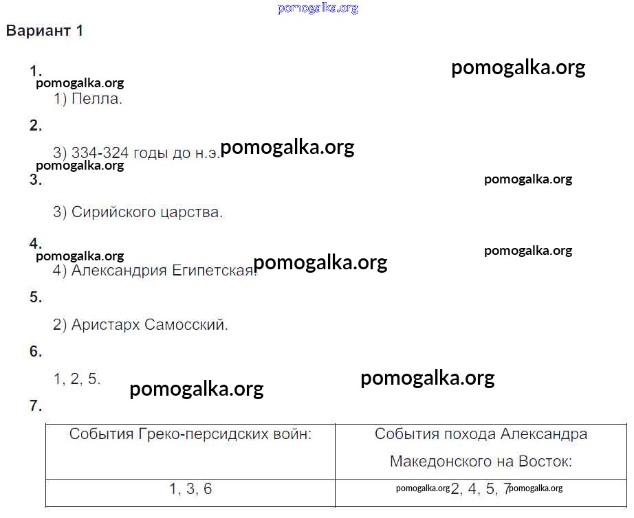 Готовые ответы - Всеобщая история Древнего мира 5 класс проверочные и контрольные работы Крючкова Е.А. - кр-2 глава-10 Вариант №1