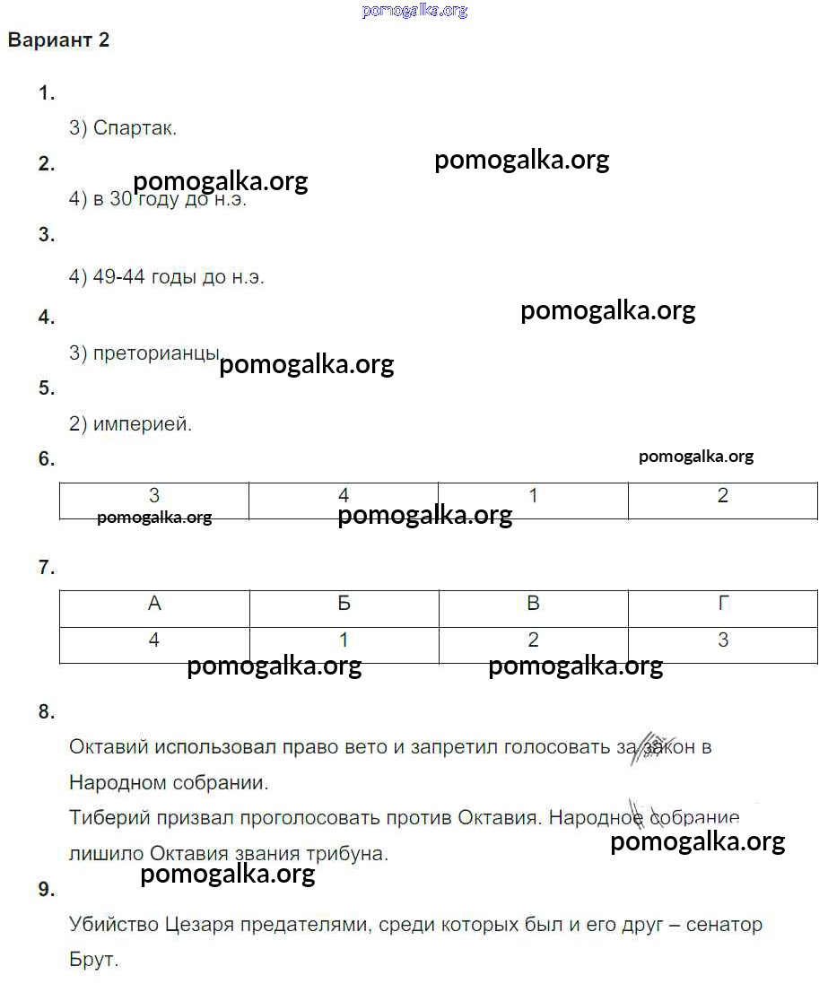 Готовые ответы - Всеобщая история Древнего мира 5 класс проверочные и контрольные работы Крючкова Е.А. - кр глава-13 Вариант №2