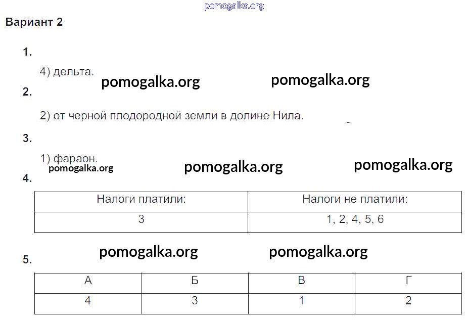 Готовые ответы - Всеобщая история Древнего мира 5 класс проверочные и контрольные работы Крючкова Е.А. - пр-1 глава-4 Вариант №2