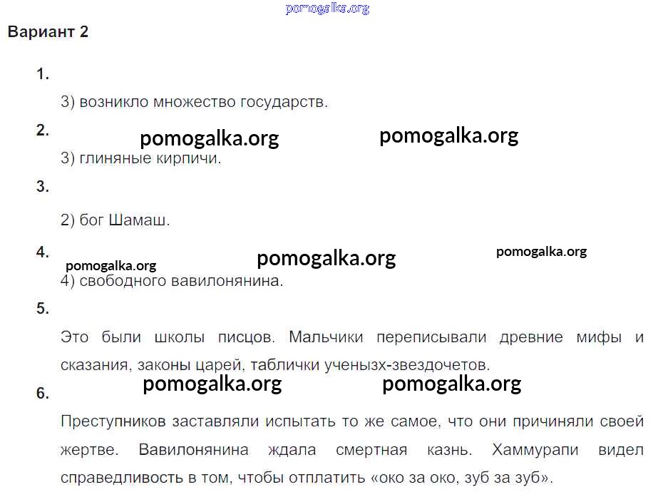 Готовые ответы - Всеобщая история Древнего мира 5 класс проверочные и контрольные работы Крючкова Е.А. - пр-1 глава-5 Вариант №2