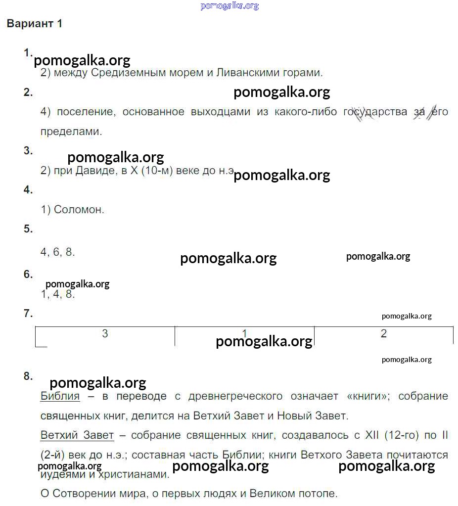 Готовые ответы - Всеобщая история Древнего мира 5 класс проверочные и контрольные работы Крючкова Е.А. - пр-2 глава-5 Вариант №1
