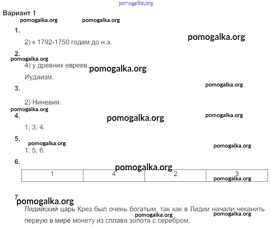 Готовые ответы - Всеобщая история Древнего мира 5 класс проверочные и контрольные работы Крючкова Е.А. - кр глава-5 Вариант №1