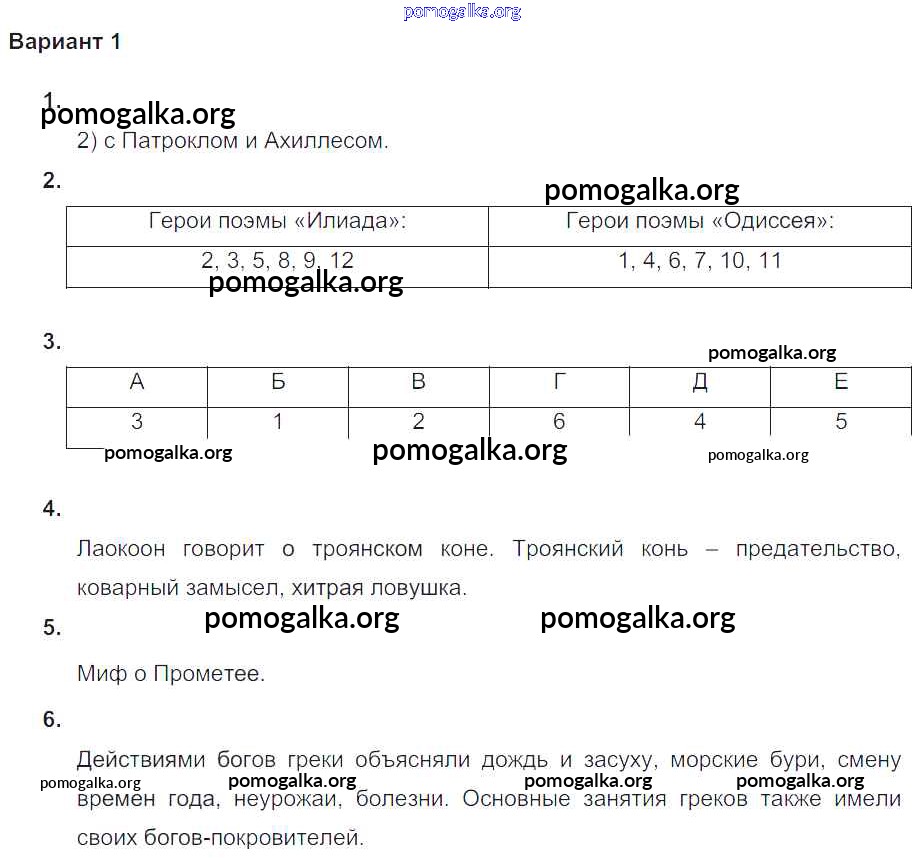 Готовые ответы - Всеобщая история Древнего мира 5 класс проверочные и контрольные работы Крючкова Е.А. - пр-№2 глава-7 Вариант №1