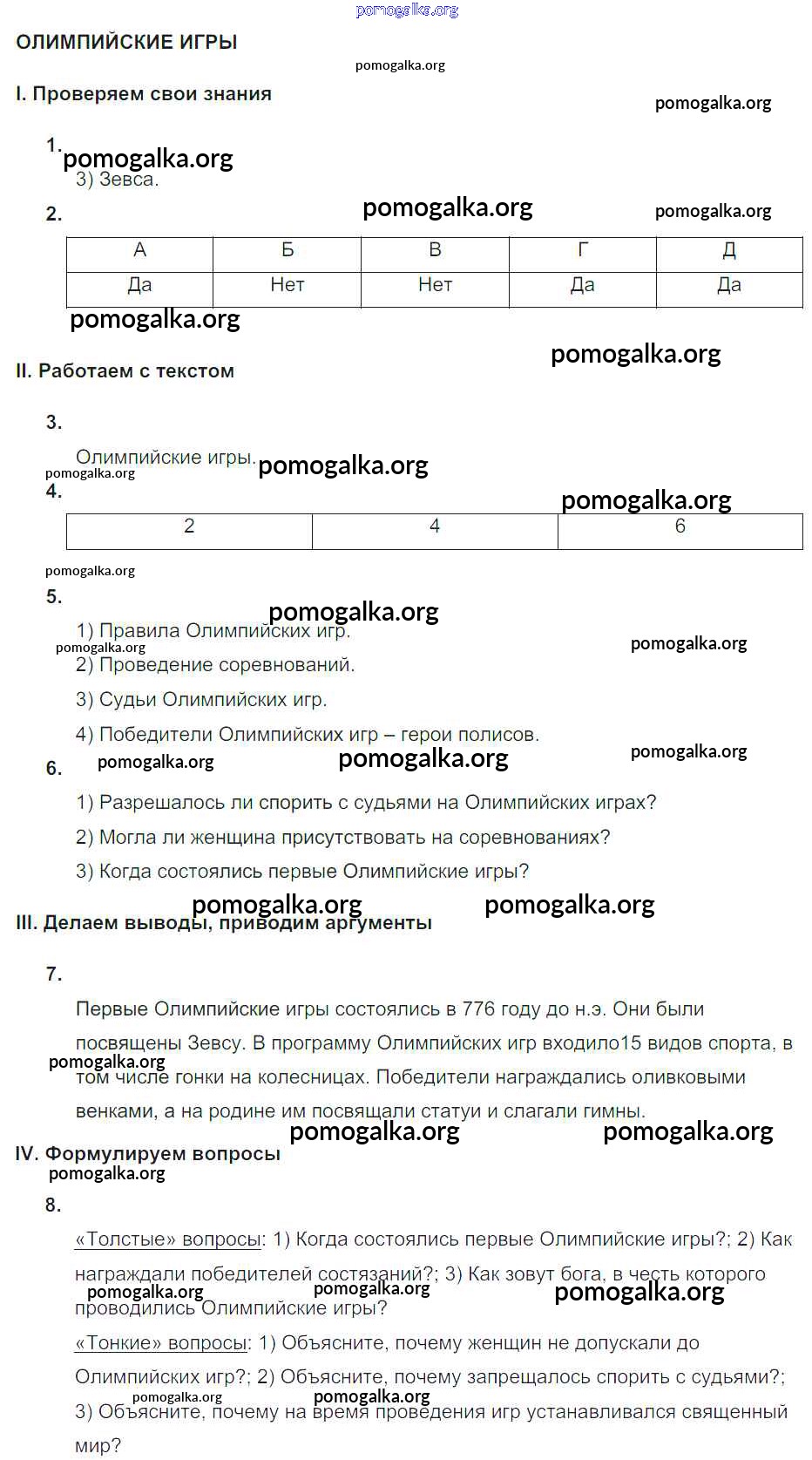 Готовые ответы - Всеобщая История 5 класс Тематический контроль Саплина Е.В. - самостоятельная работа СР №18. Олимпийские игры