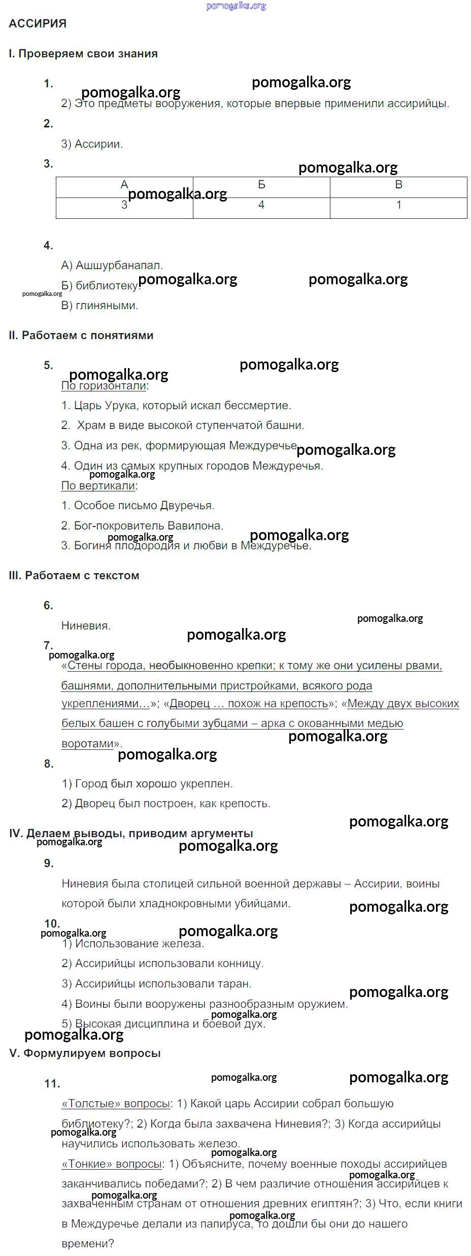 Готовые ответы - Всеобщая История 5 класс Тематический контроль Саплина Е.В. - самостоятельная работа СР №4. Ассирия