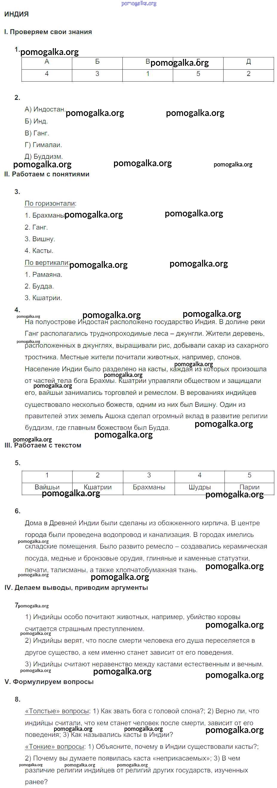 Готовые ответы - Всеобщая История 5 класс Тематический контроль Саплина Е.В. - самостоятельная работа СР №8. Индия