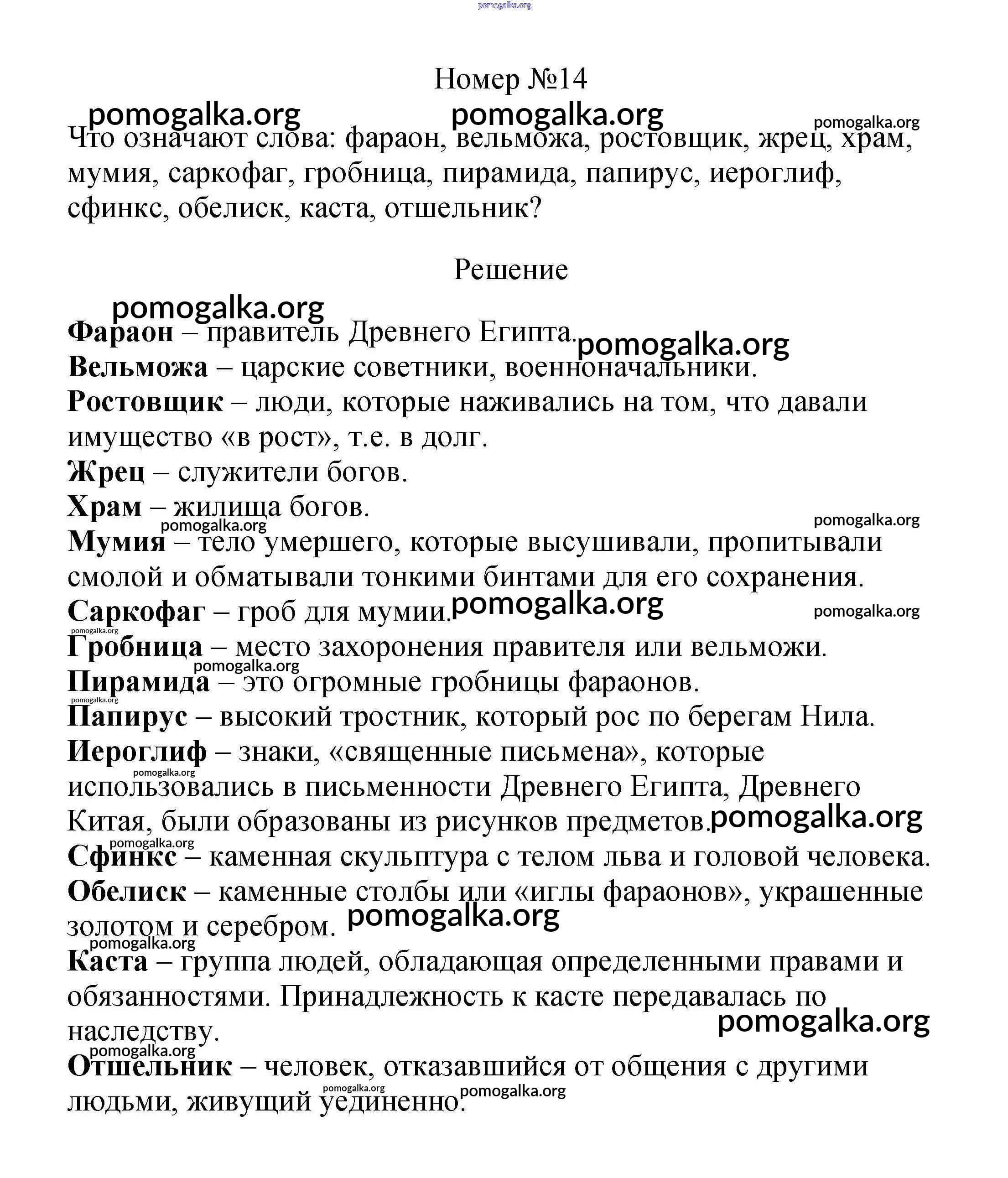 Готовые ответы - История Древнего мира 5 класс Вигасин А.А. - «Древний Восток» 14
