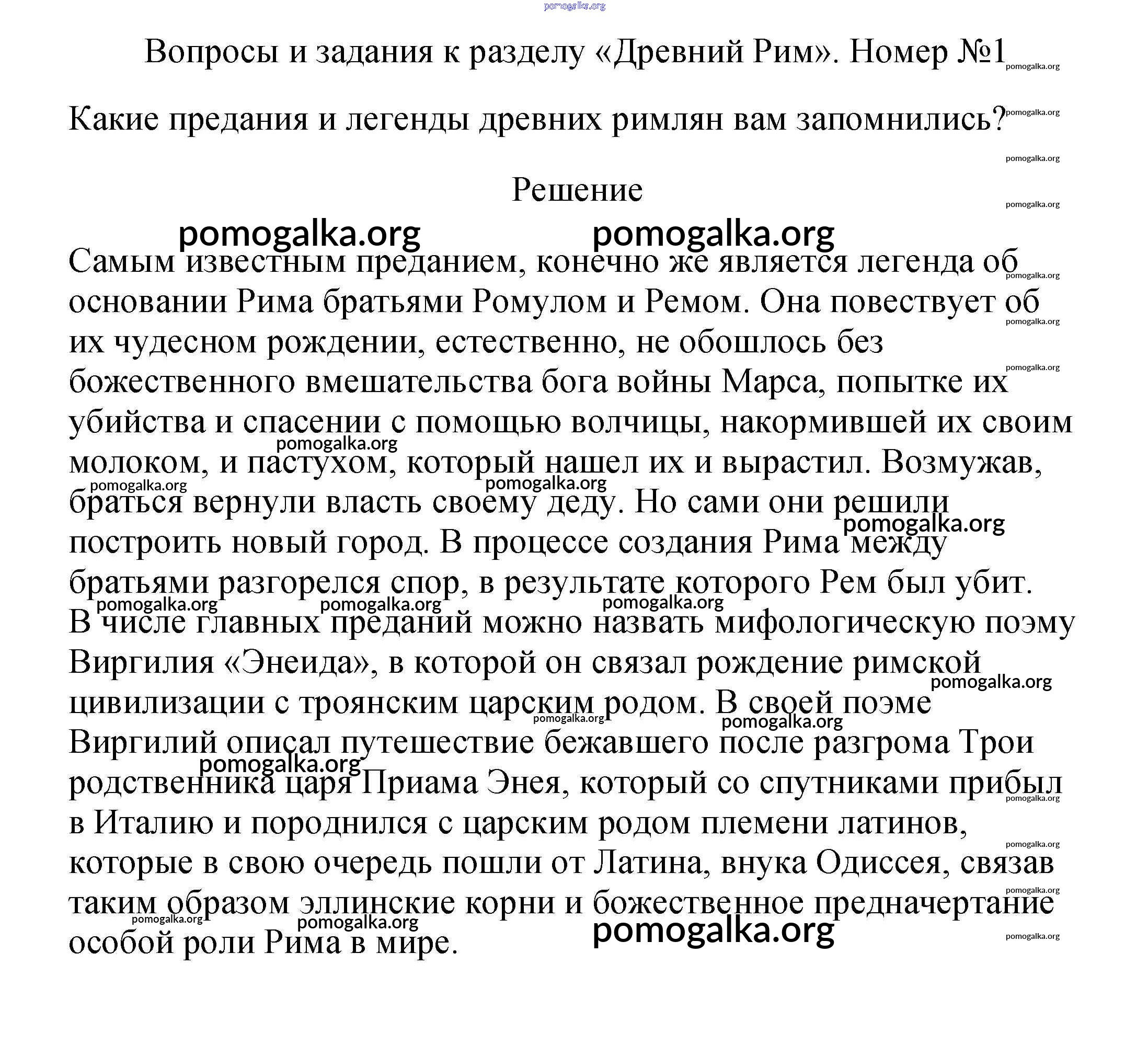 Готовые ответы - История Древнего мира 5 класс Вигасин А.А. - «Древний Рим» 1