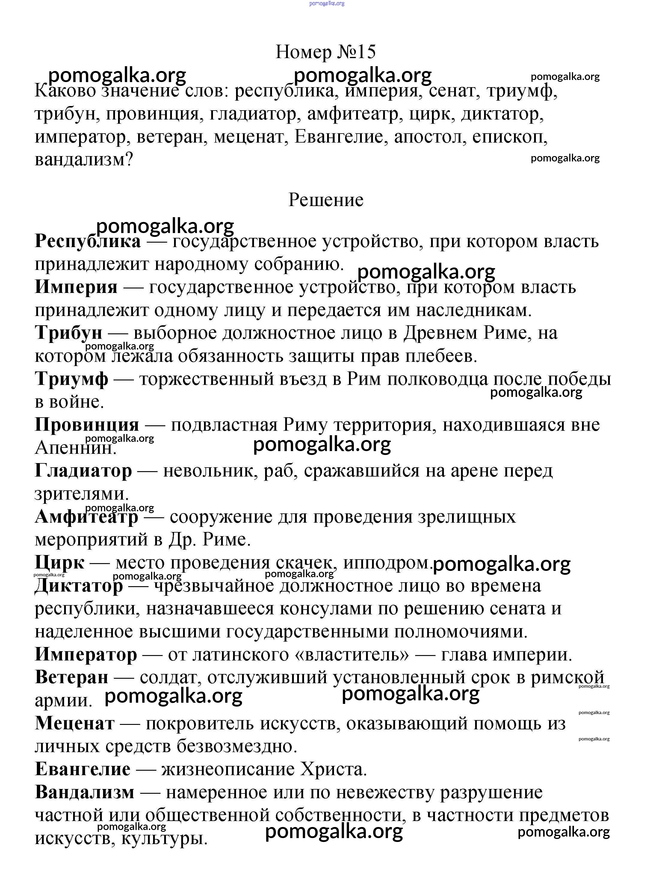 Готовые ответы - История Древнего мира 5 класс Вигасин А.А. - «Древний Рим» 15