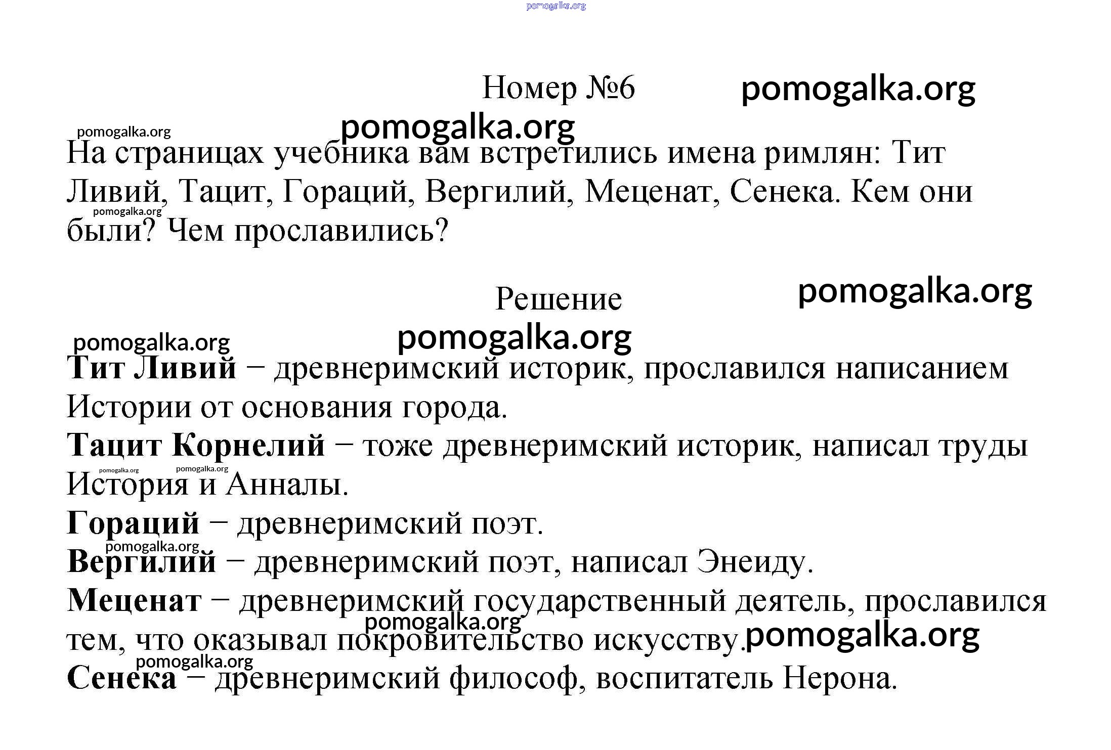 Готовые ответы - История Древнего мира 5 класс Вигасин А.А. - «Древний Рим» 6