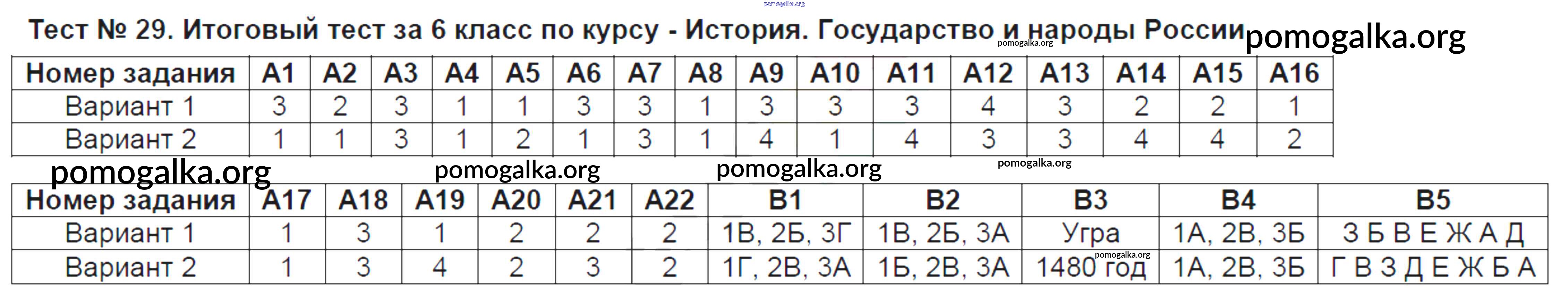 Готовые ответы - История России 6 класс контрольно-измерительные материалы Волкова К.В. - тест 29