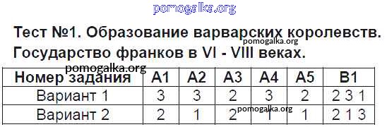 Готовые ответы - История средних веков 6 класс контрольно-измерительные материалы (КИМ) Чернова М.Н. - тест 1