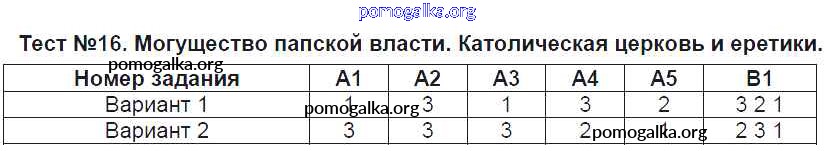 Готовые ответы - История средних веков 6 класс контрольно-измерительные материалы (КИМ) Чернова М.Н. - тест 16