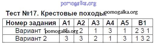 Готовые ответы - История средних веков 6 класс контрольно-измерительные материалы (КИМ) Чернова М.Н. - тест 17