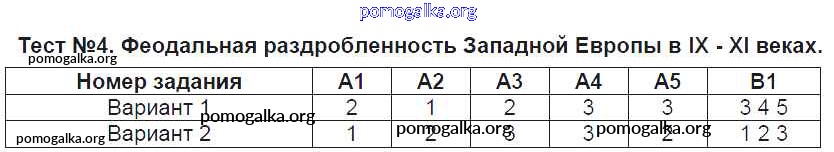 Готовые ответы - История средних веков 6 класс контрольно-измерительные материалы (КИМ) Чернова М.Н. - тест 4