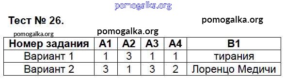 Готовые ответы - Всеобщая история. История средних веков 6 класс контрольно-измерительные материалы (КИМ) Волкова К.В. - тест 26