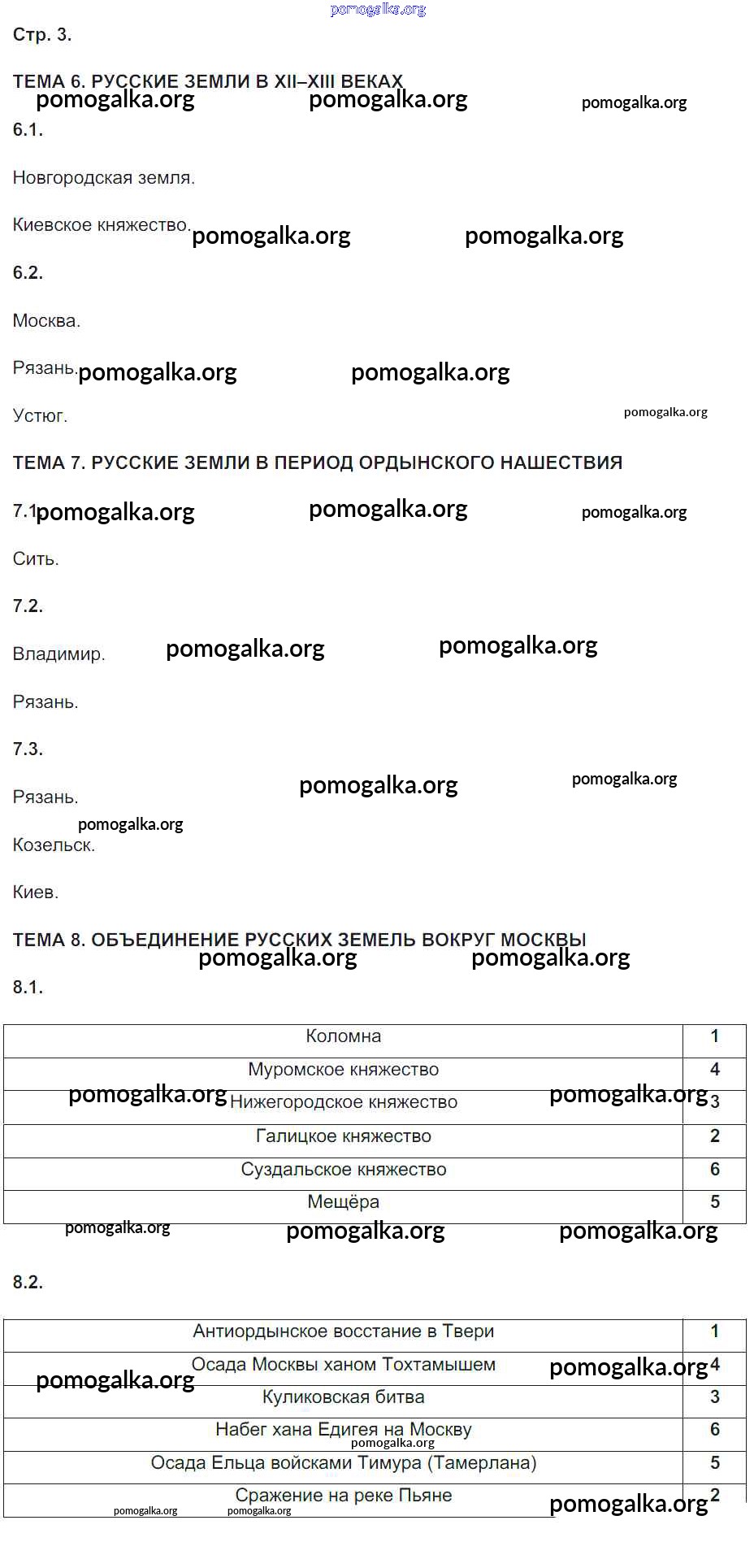 Готовые ответы - История России 6 класс Контурные карты с заданиями Колпаков С.В. - проверочная работа. страница 3