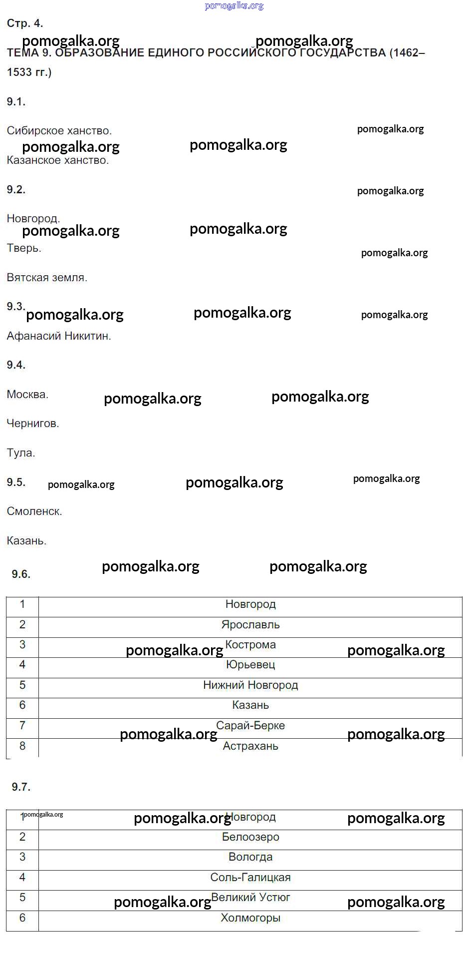 Готовые ответы - История России 6 класс Контурные карты с заданиями Колпаков С.В. - проверочная работа. страница 4