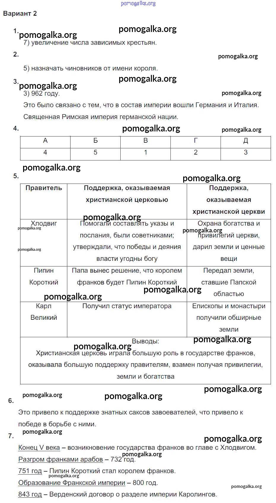 Готовые ответы - Всеобщая история. История Средних веков 6 класс проверочные и контрольные работы Крючкова Е.А. - пр №2 глава 1 вариант-2