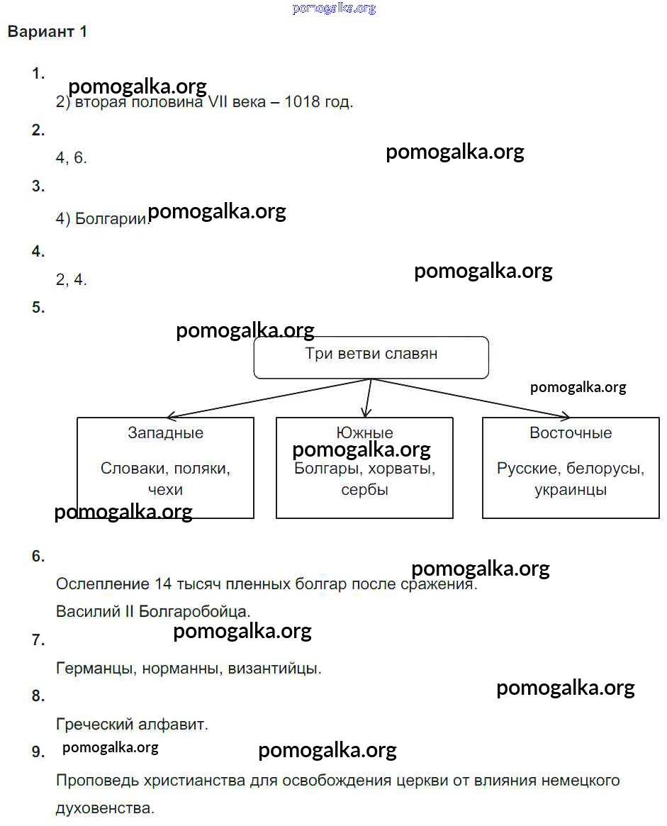 Готовые ответы - Всеобщая история. История Средних веков 6 класс проверочные и контрольные работы Крючкова Е.А. - пр №2 глава 2 вариант-1