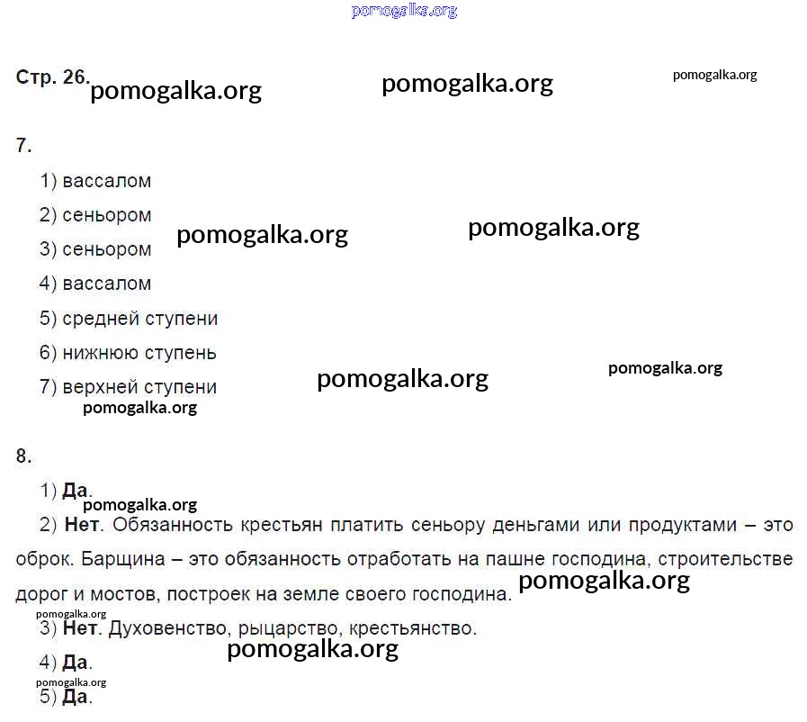 Готовые ответы - История Средних веков 6 класс рабочая тетрадь Баранов П.А. - страница 26
