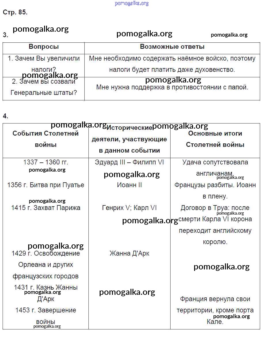 Готовые ответы - История Средних веков 6 класс рабочая тетрадь Баранов П.А. - страница 85