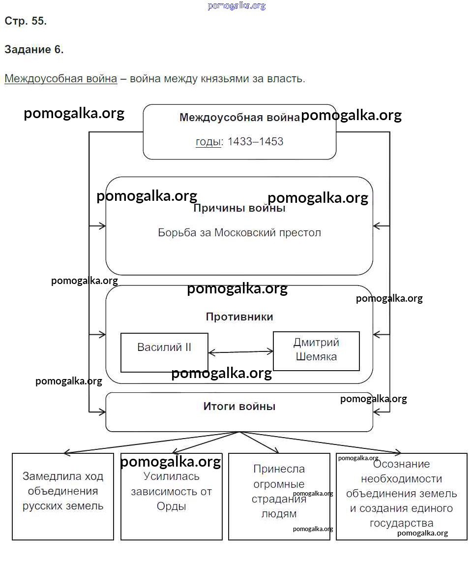 Готовые ответы - История России 6 класс рабочая тетрадь Чернова М.Н. (к уч. Торкунова) - часть 2. страница 55