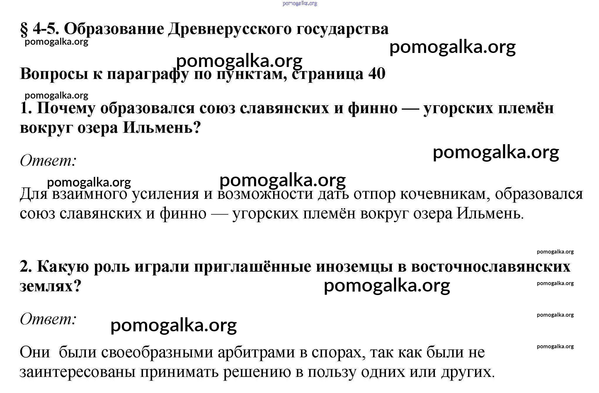 Готовые ответы - История России с древнейших времён до XVI 6 класс Андреев И.Л. - §4-5 учебник 2016 стр.40