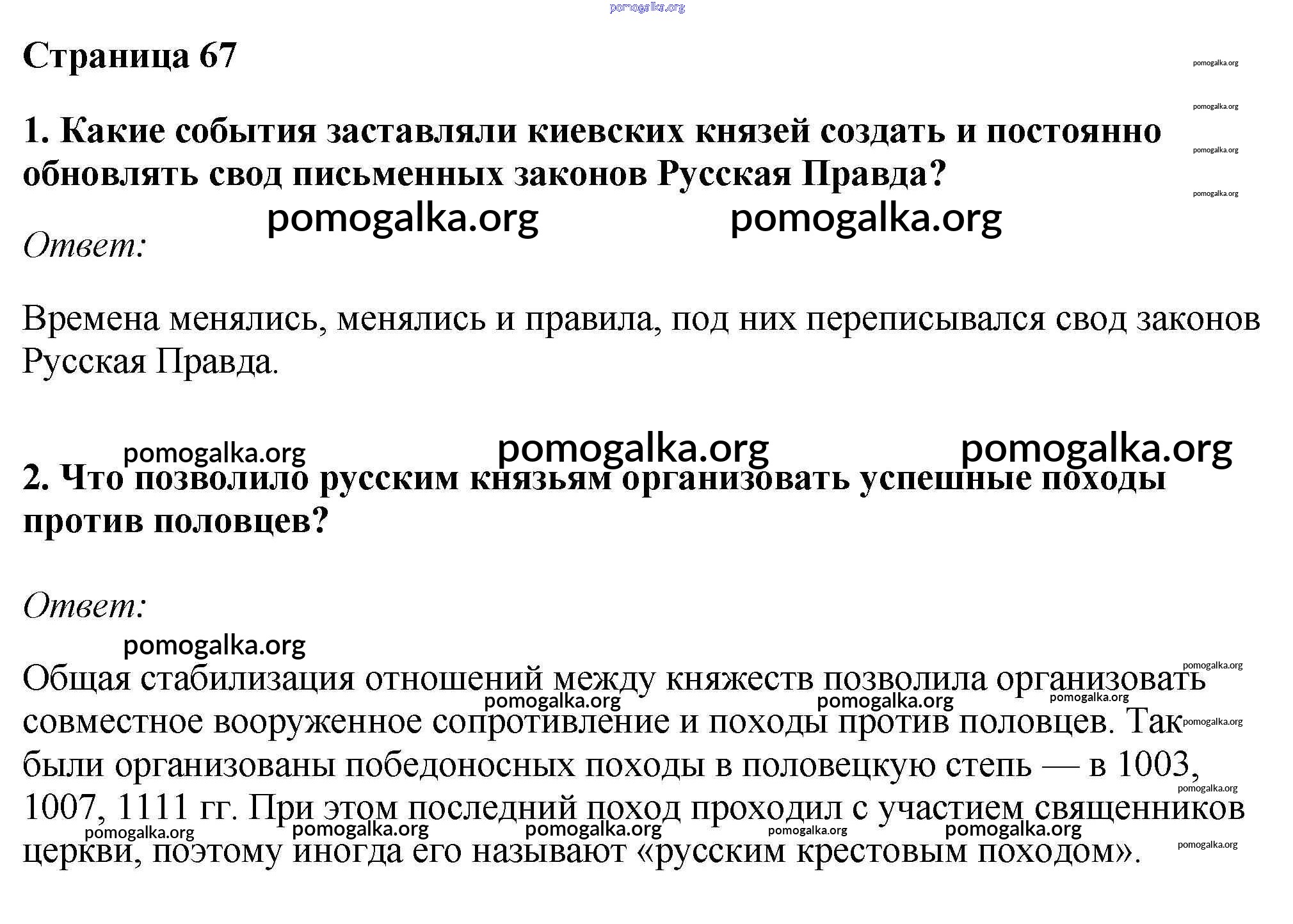 Готовые ответы - История России с древнейших времён до XVI 6 класс Андреев И.Л. - §8-9 учебник 2016 стр.67