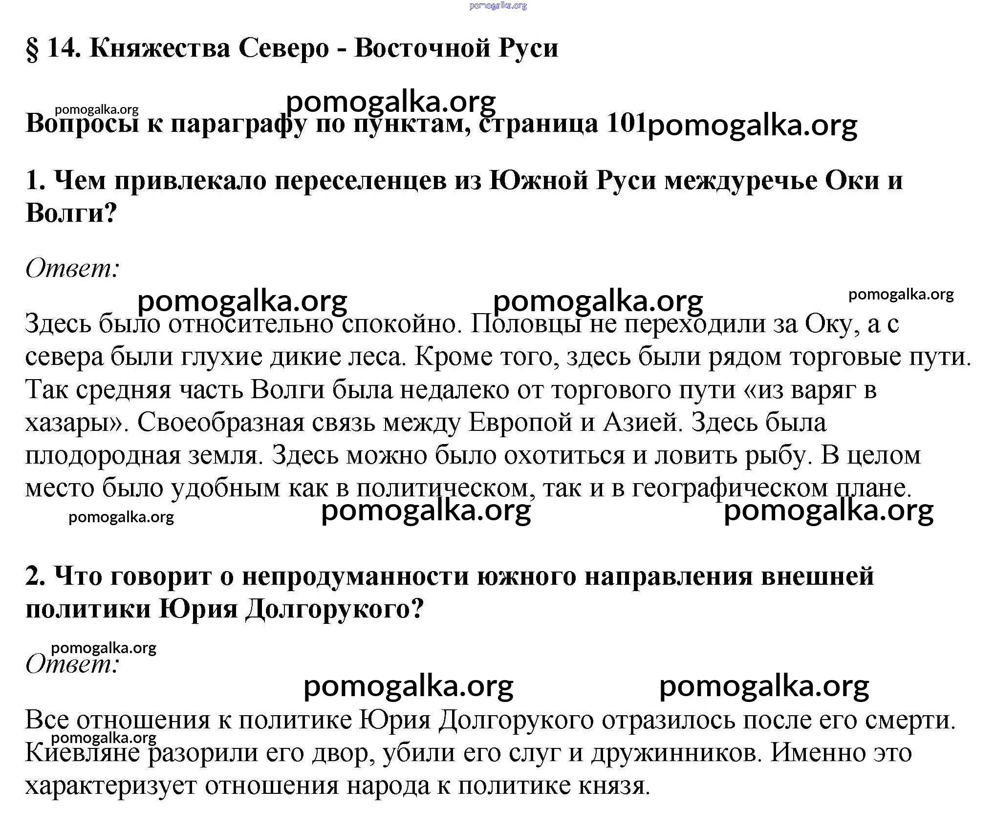 Готовые ответы - История России с древнейших времён до XVI 6 класс Андреев И.Л. - §14 учебник 2016 стр.101