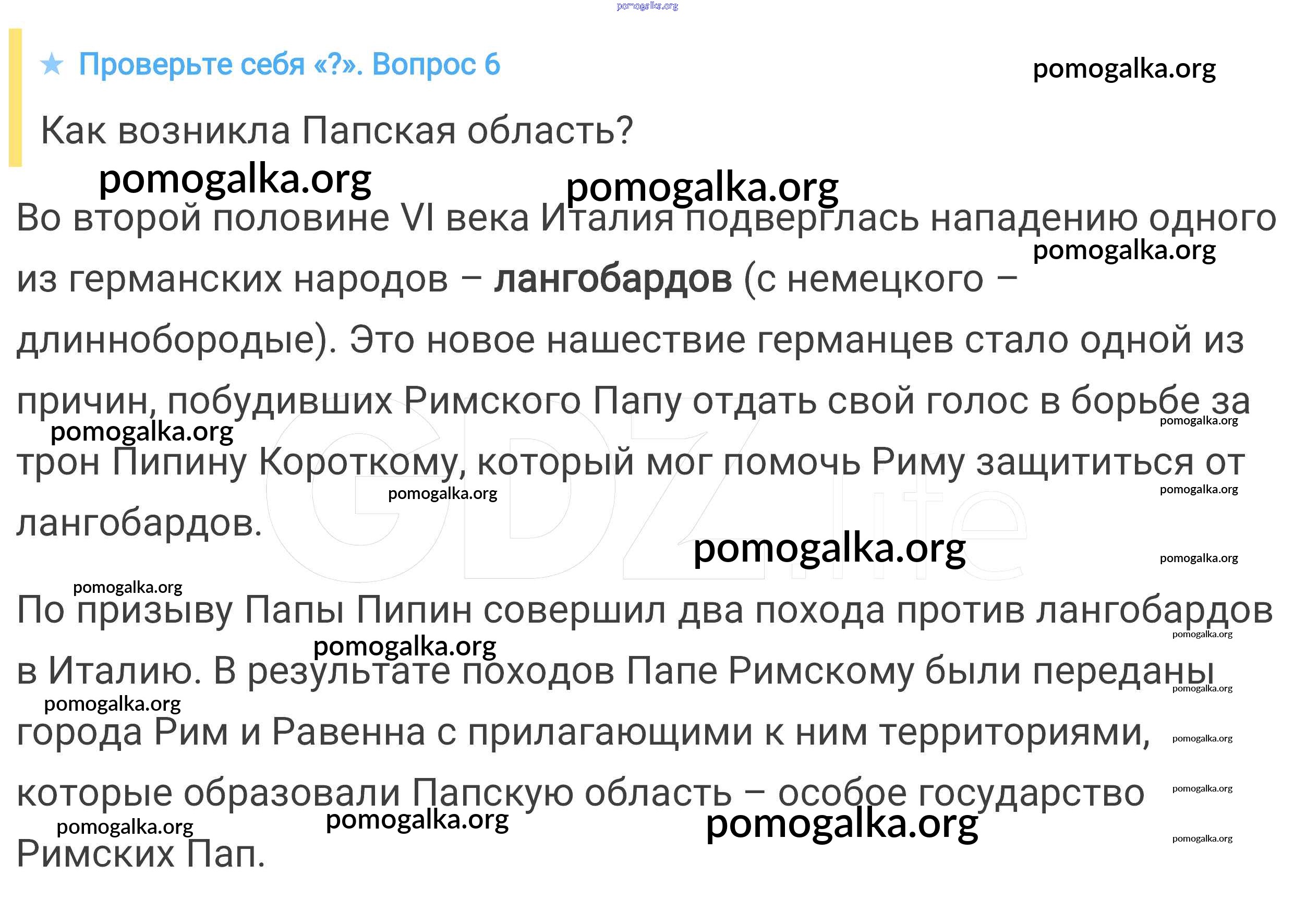 Готовые ответы - Всеобщая история. История средних веков 6 класс Агибалова Е.В. - проверьте себя §1 6