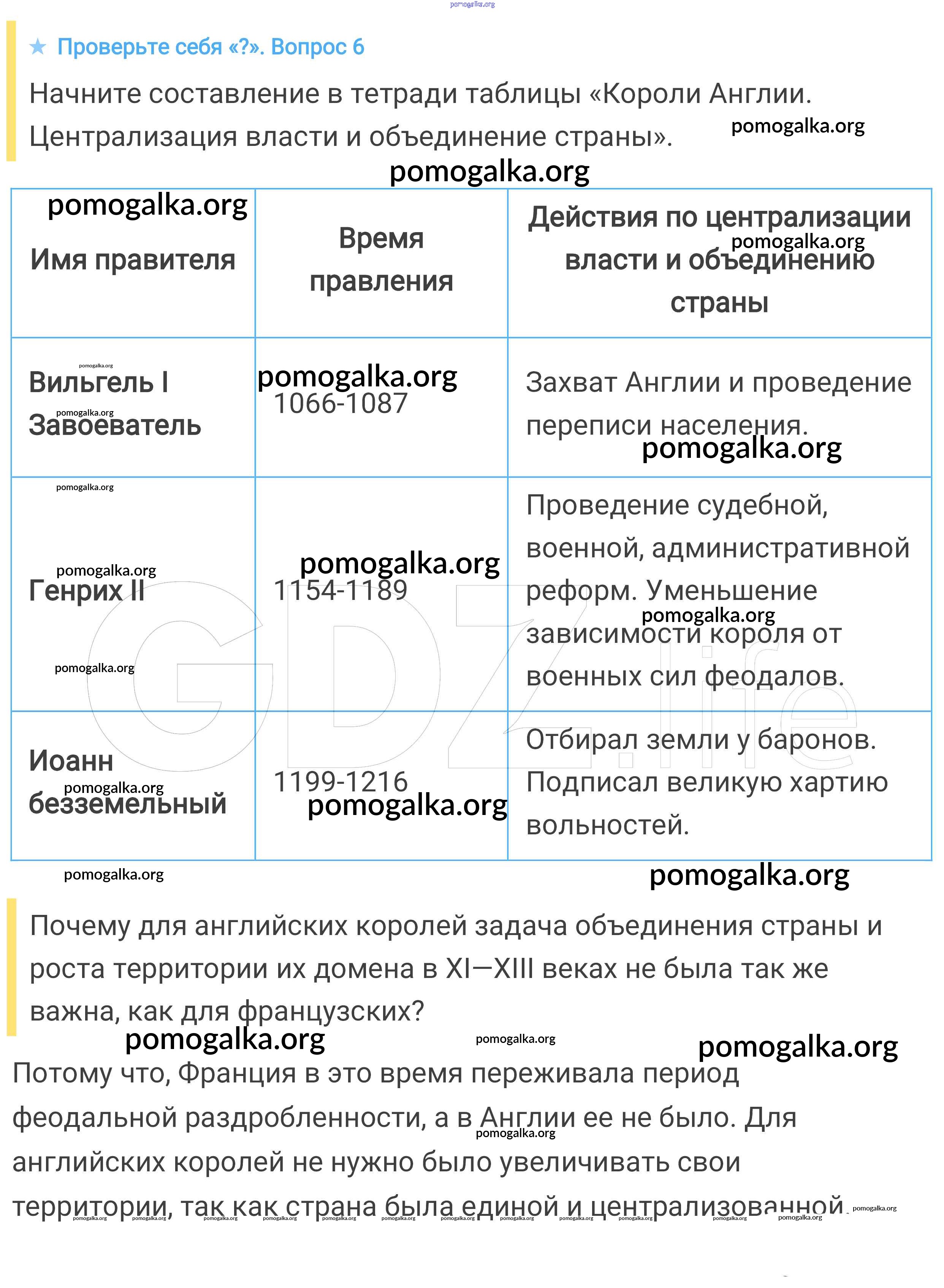 Готовые ответы - Всеобщая история. История средних веков 6 класс Агибалова Е.В. - проверьте себя §19 6
