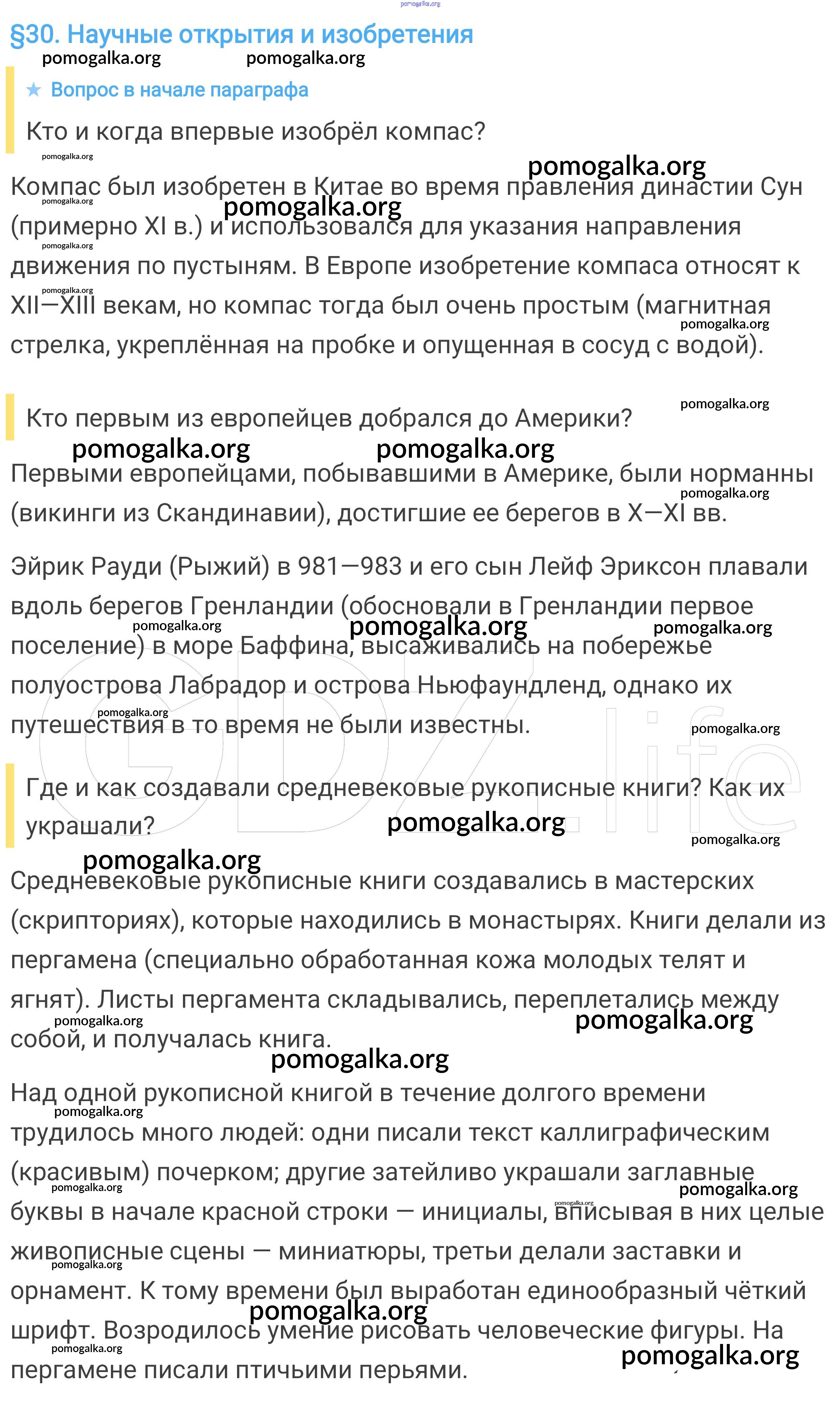 Готовые ответы - Всеобщая история. История средних веков 6 класс Агибалова Е.В. - вопрос в начале параграфа §30 1