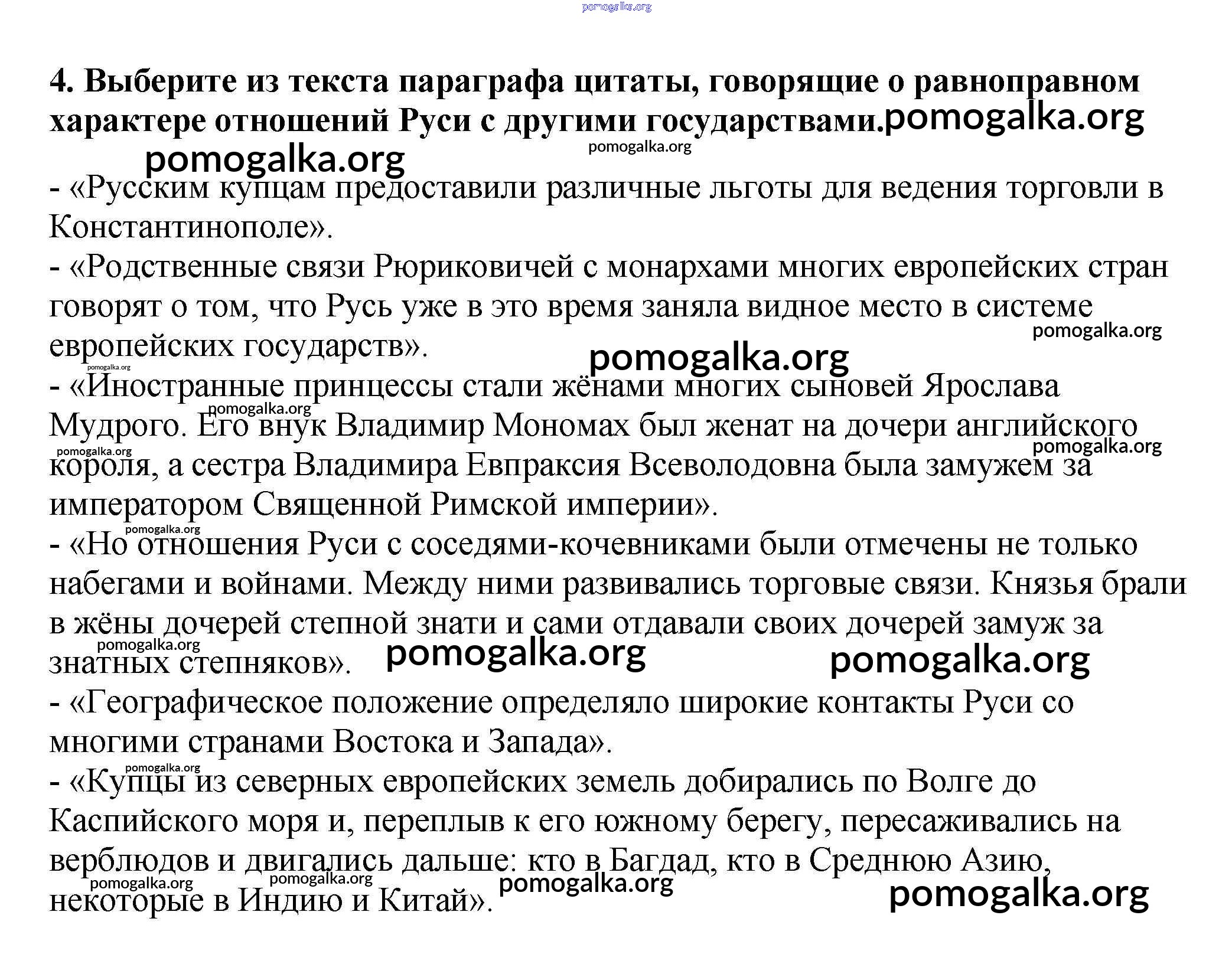 Готовые ответы - История России 6 класс Арсентьев Н.М. - работа с текстом место и роль Руси в Европе 4