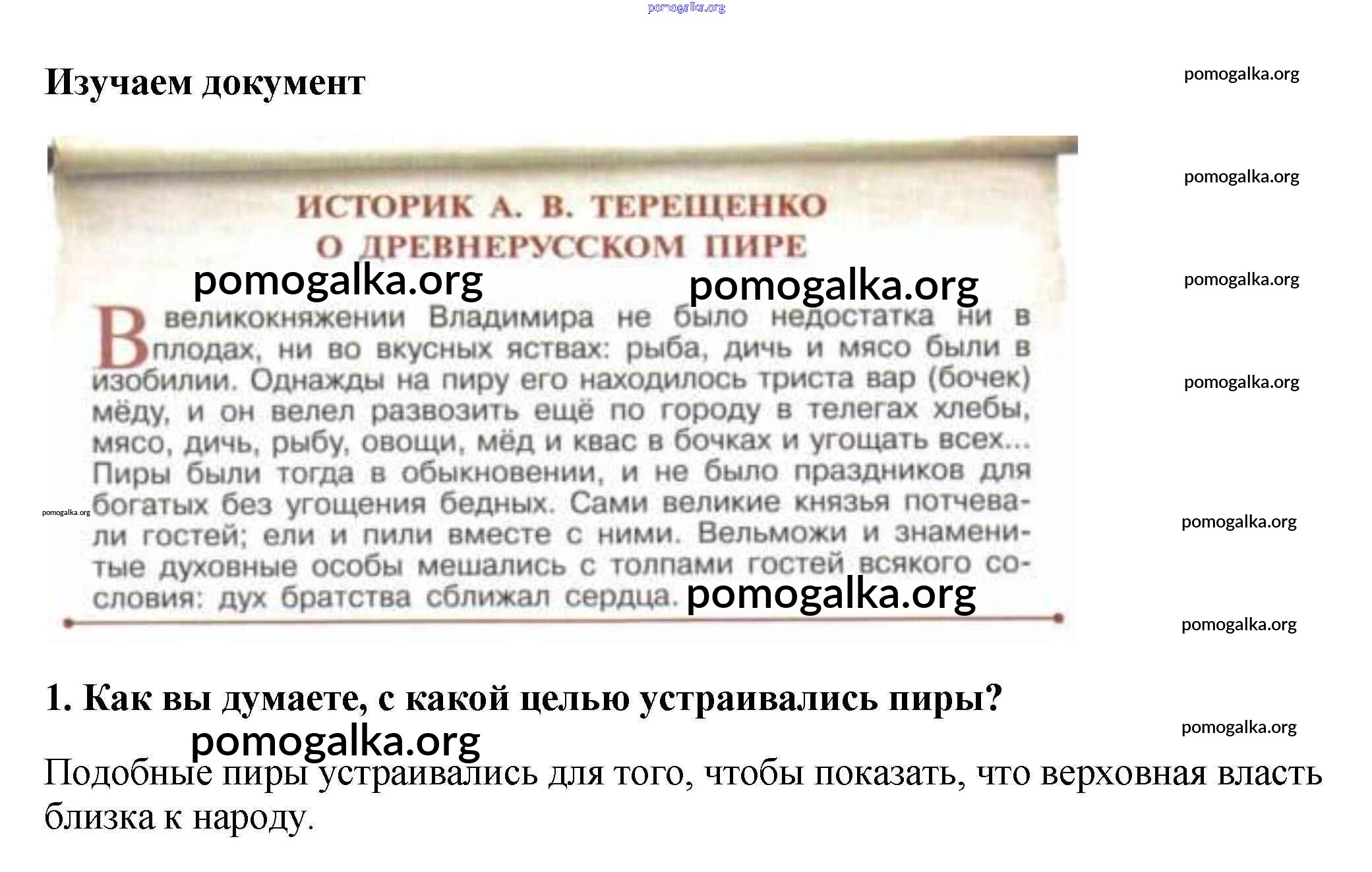 Готовые ответы - История России 6 класс Арсентьев Н.М. - изучаем документ §11 1