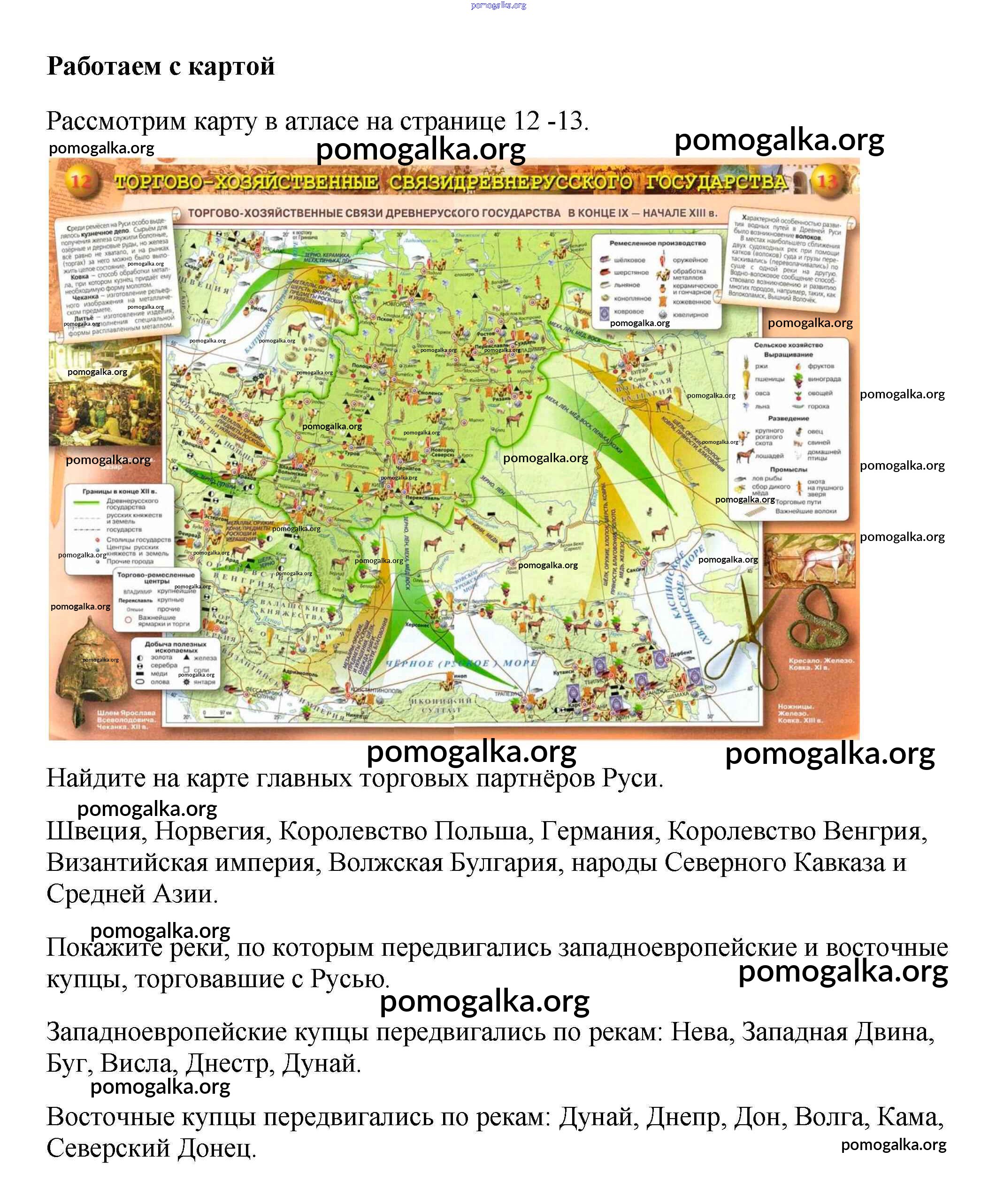 Готовые ответы - История России 6 класс Арсентьев Н.М. - работаем с картой §12 1