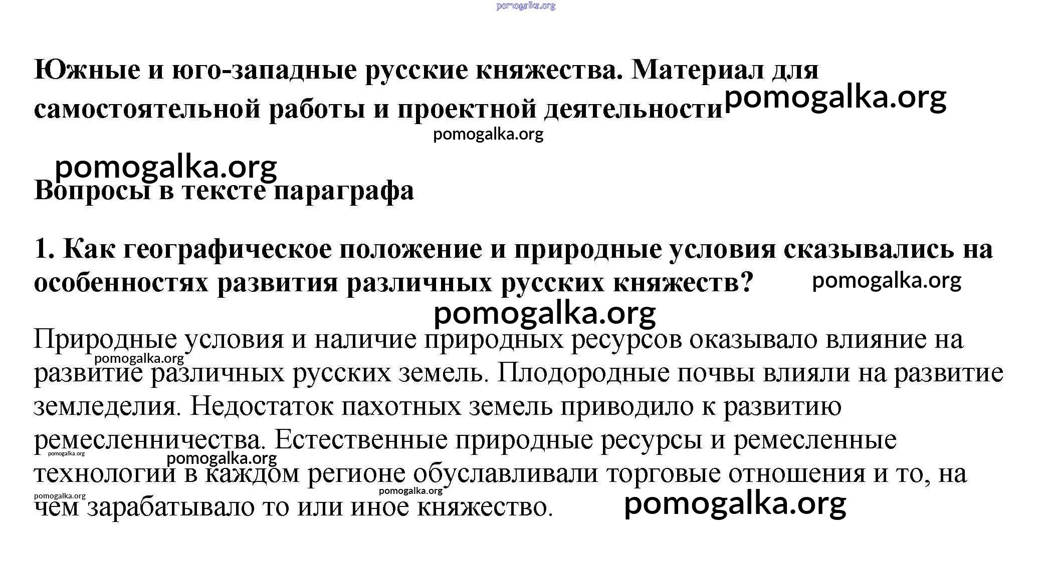 Готовые ответы - История России 6 класс Арсентьев Н.М. - вопрос в тексте южные и юго-западные русские княжества. 1
