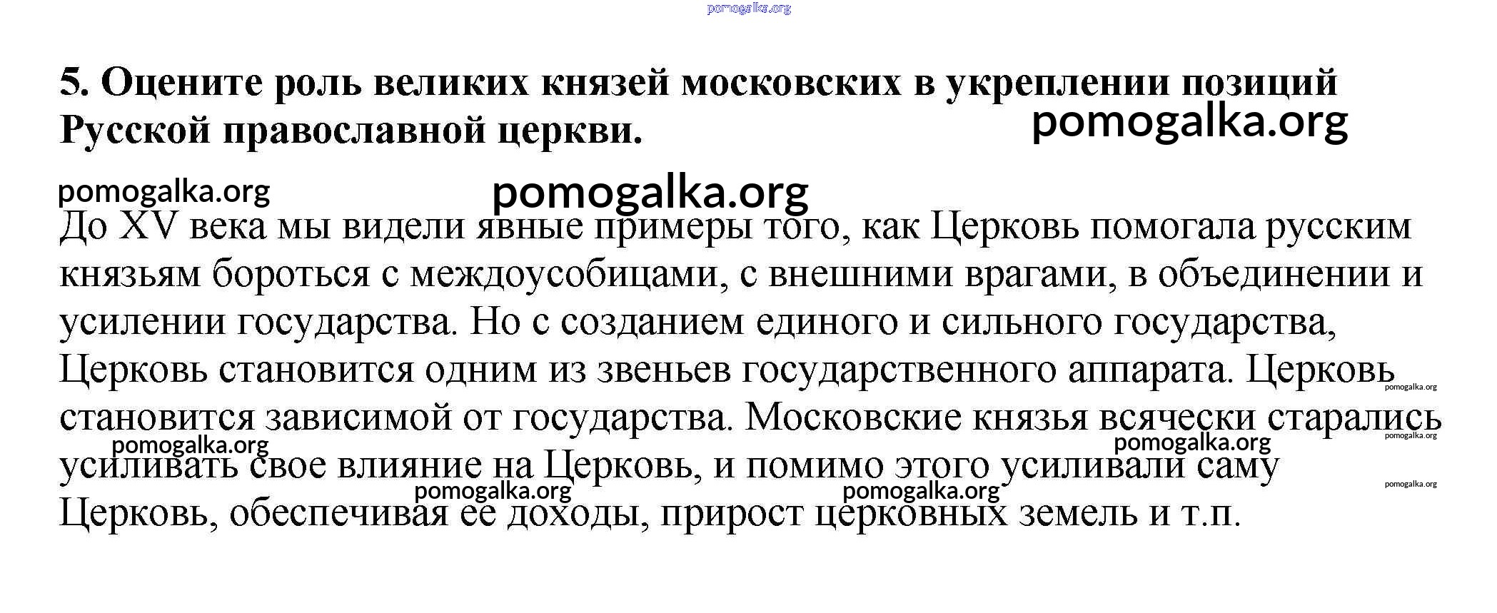 Готовые ответы - История России 6 класс Арсентьев Н.М. - работа с текстом русская православная церковь в XV — начале XVI в. 5
