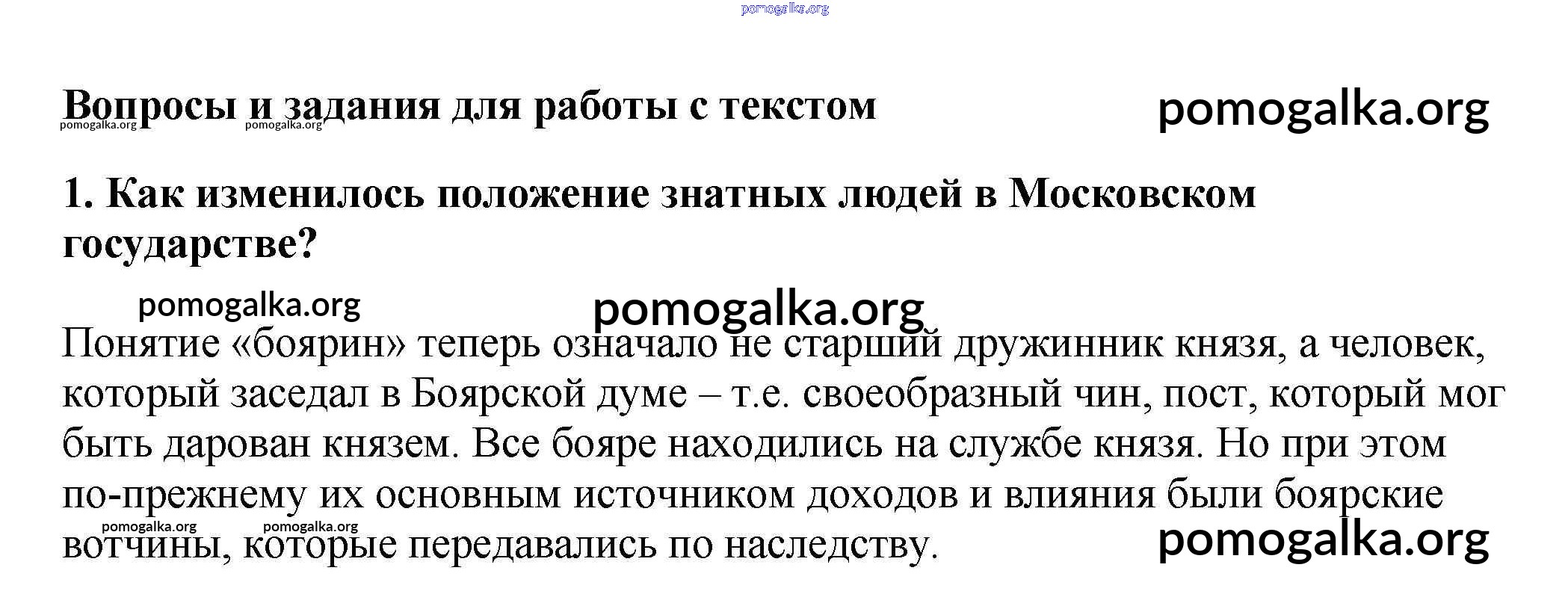 Готовые ответы - История России 6 класс Арсентьев Н.М. - работа с текстом человек в Российском государстве во второй половине XV в. 1