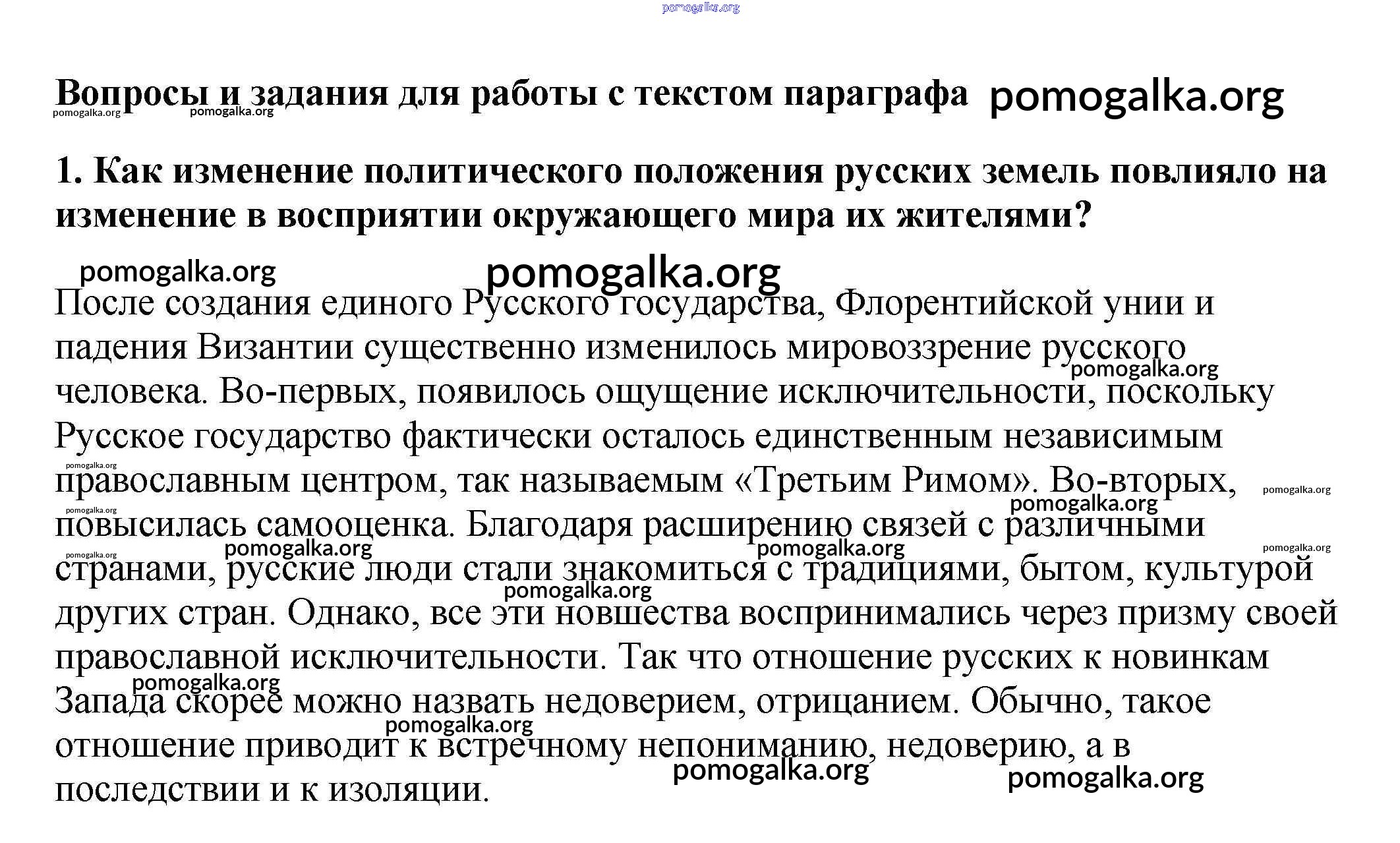 Готовые ответы - История России 6 класс Арсентьев Н.М. - работа с текстом §27 1