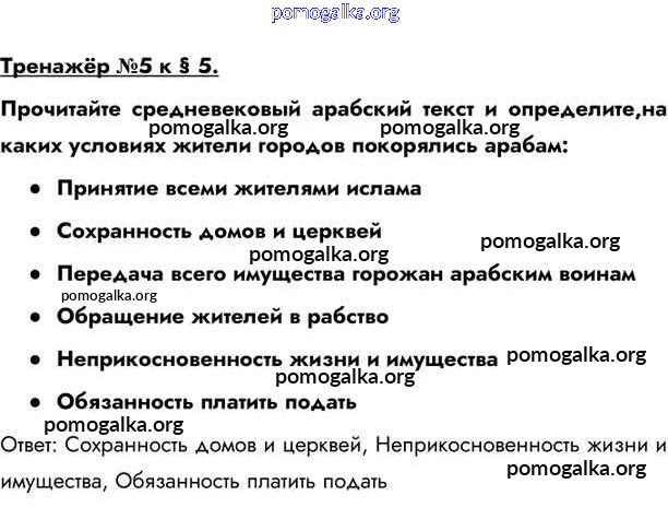 Готовые ответы - Всеобщая история. История Средних веков 6 класс Бойцов М.А. - тренажёр §5 5