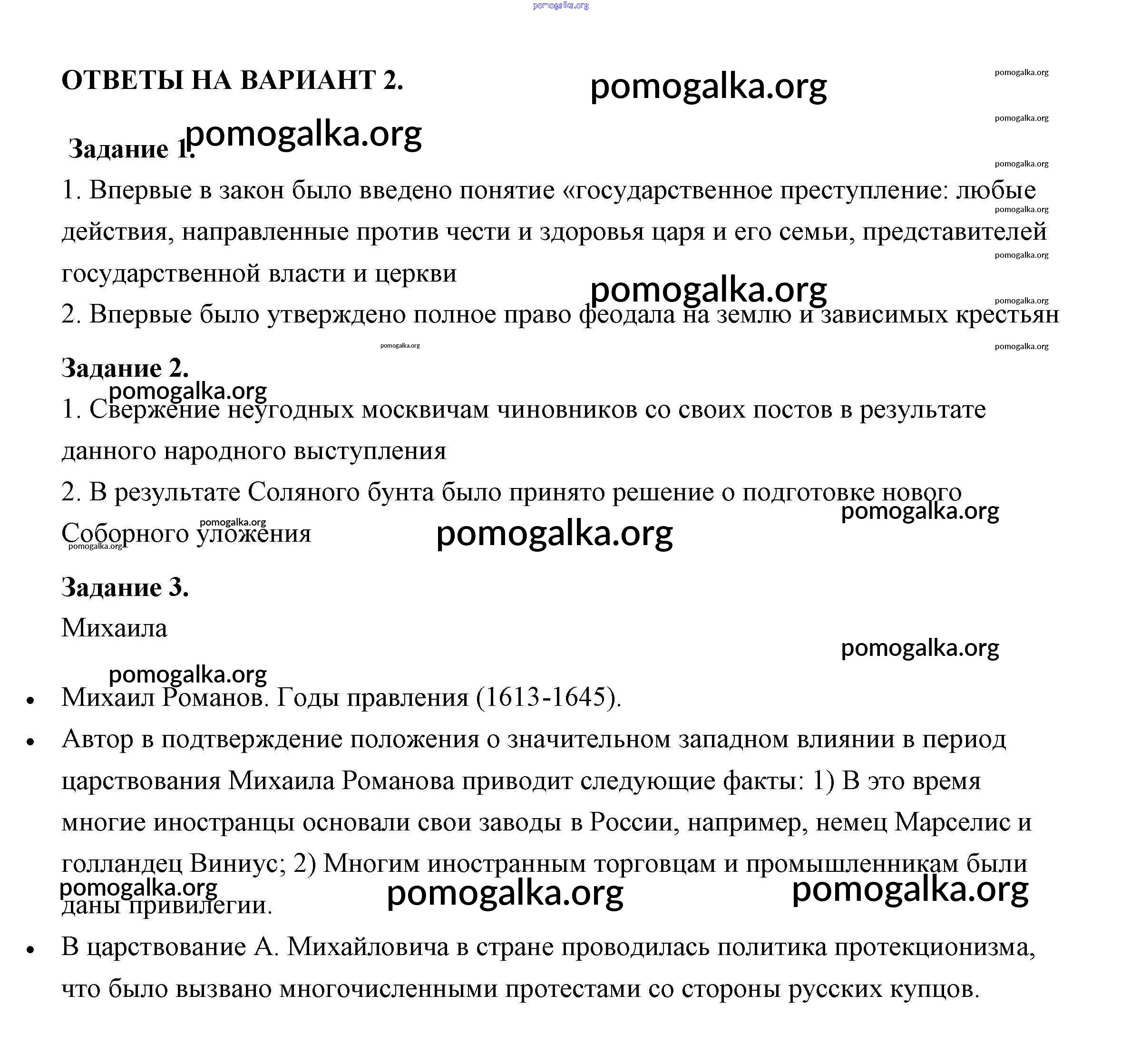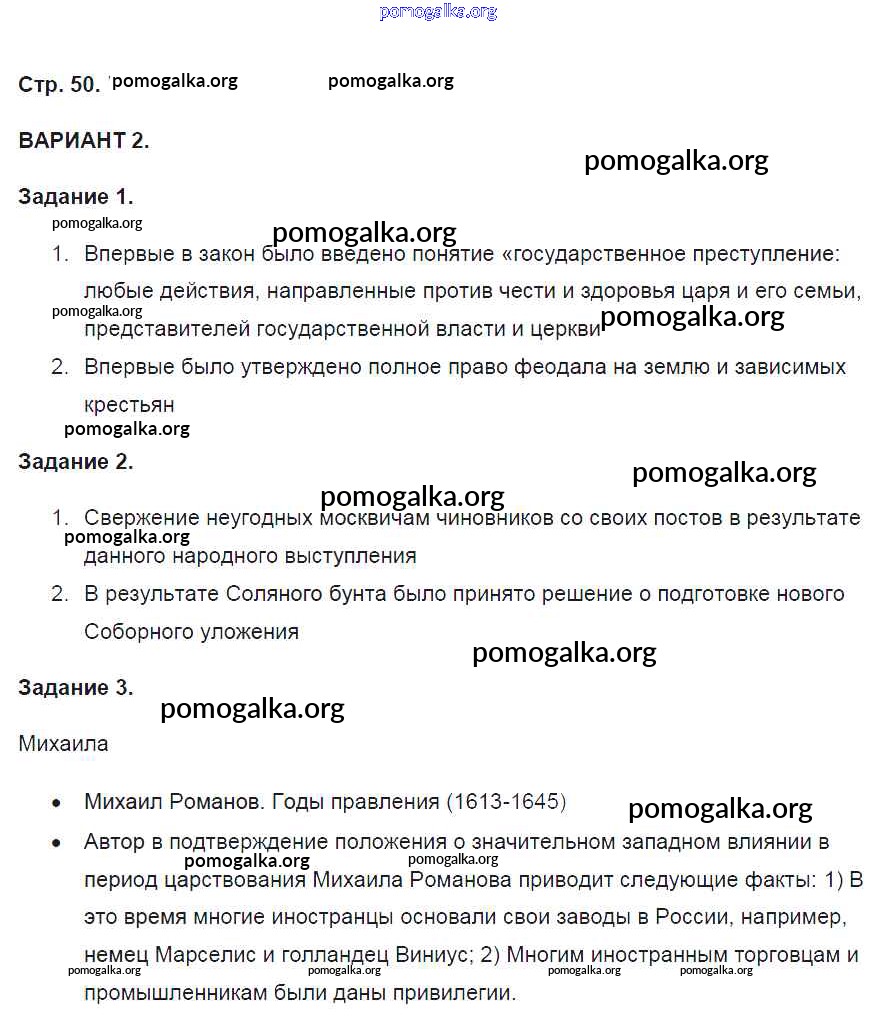 Готовые ответы - История России 7 класс контрольные работы Артасов И.А. - страница 50
