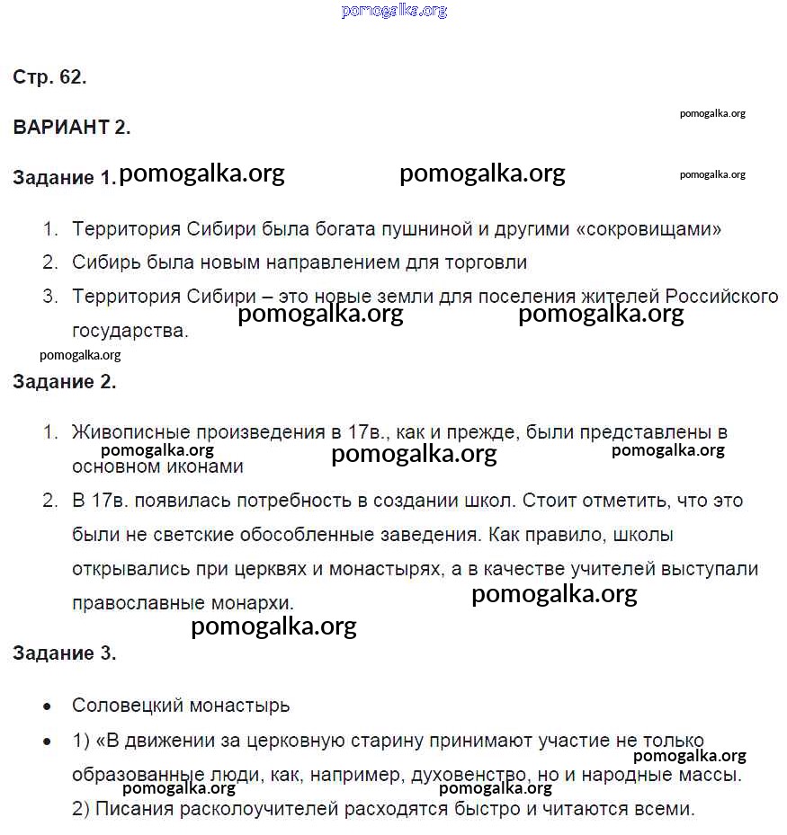 Готовые ответы - История России 7 класс контрольные работы Артасов И.А. - страница 62