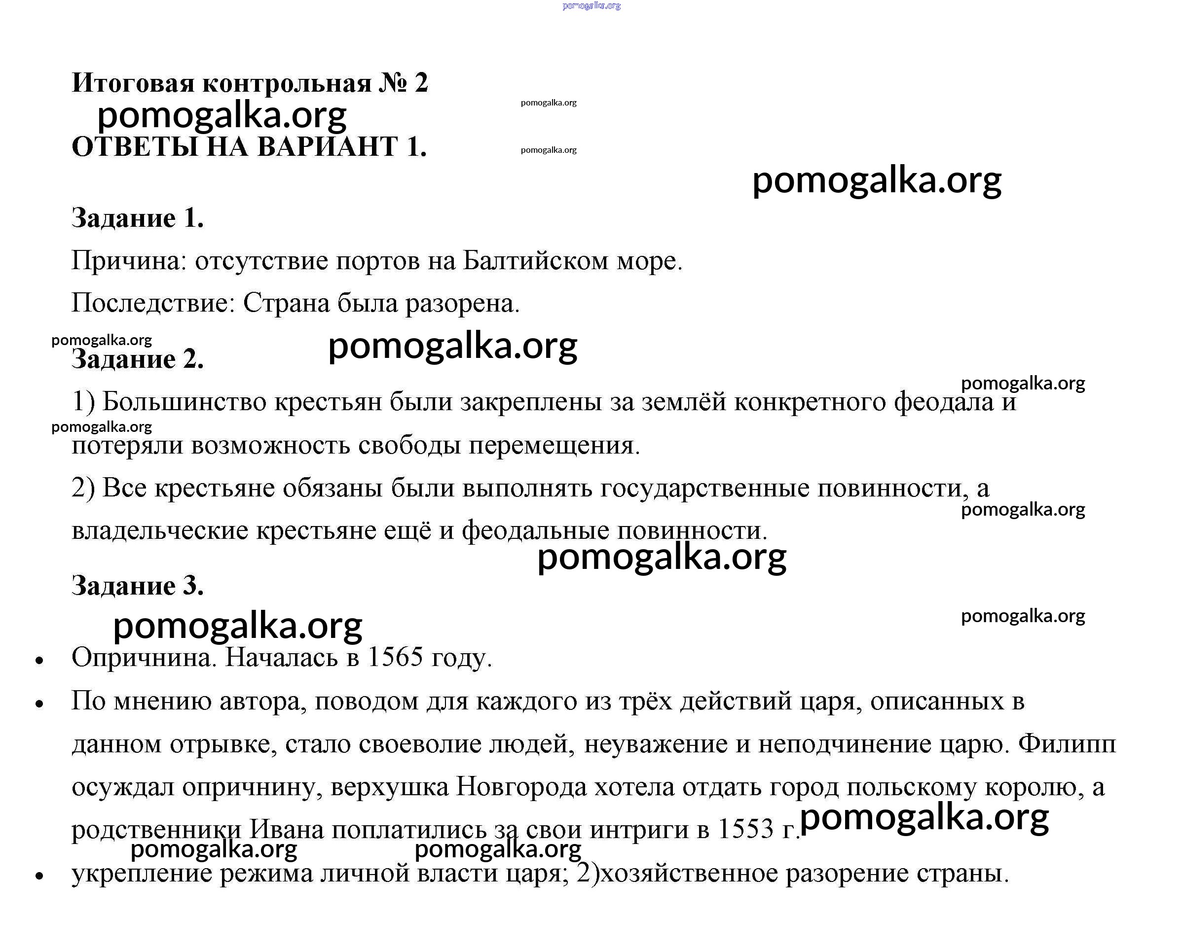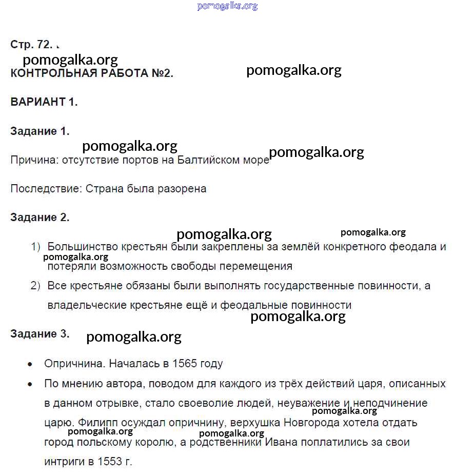 Готовые ответы - История России 7 класс контрольные работы Артасов И.А. - страница 72