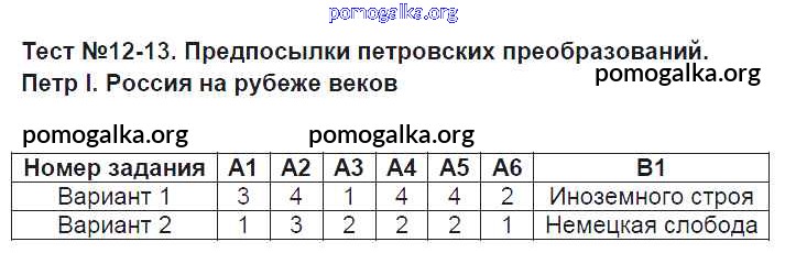 Готовые ответы - История 7 класс КИМ Смирнов Ю.А. - тест 12-13