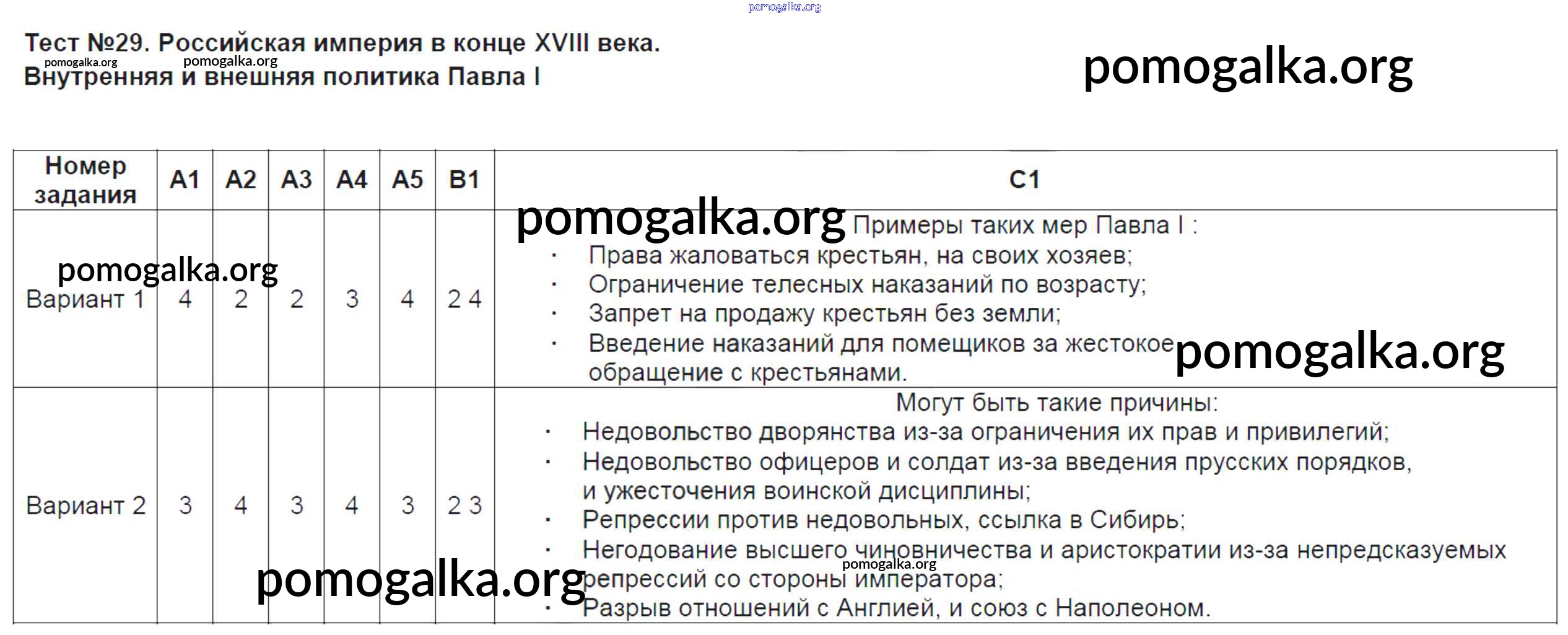 Готовые ответы - История 7 класс КИМ Смирнов Ю.А. - тест 29