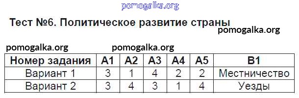 Готовые ответы - История 7 класс КИМ Смирнов Ю.А. - тест 6