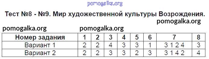 Готовые ответы - История 7 класс КИМ Калачёва Е.Н. - тест 8-9