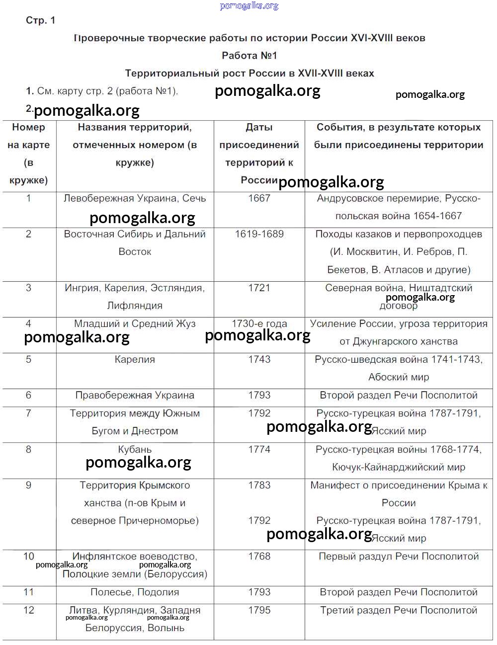 Готовые ответы - История 7 класс контурные карты Колпаков С.В. - проверочная работа 1