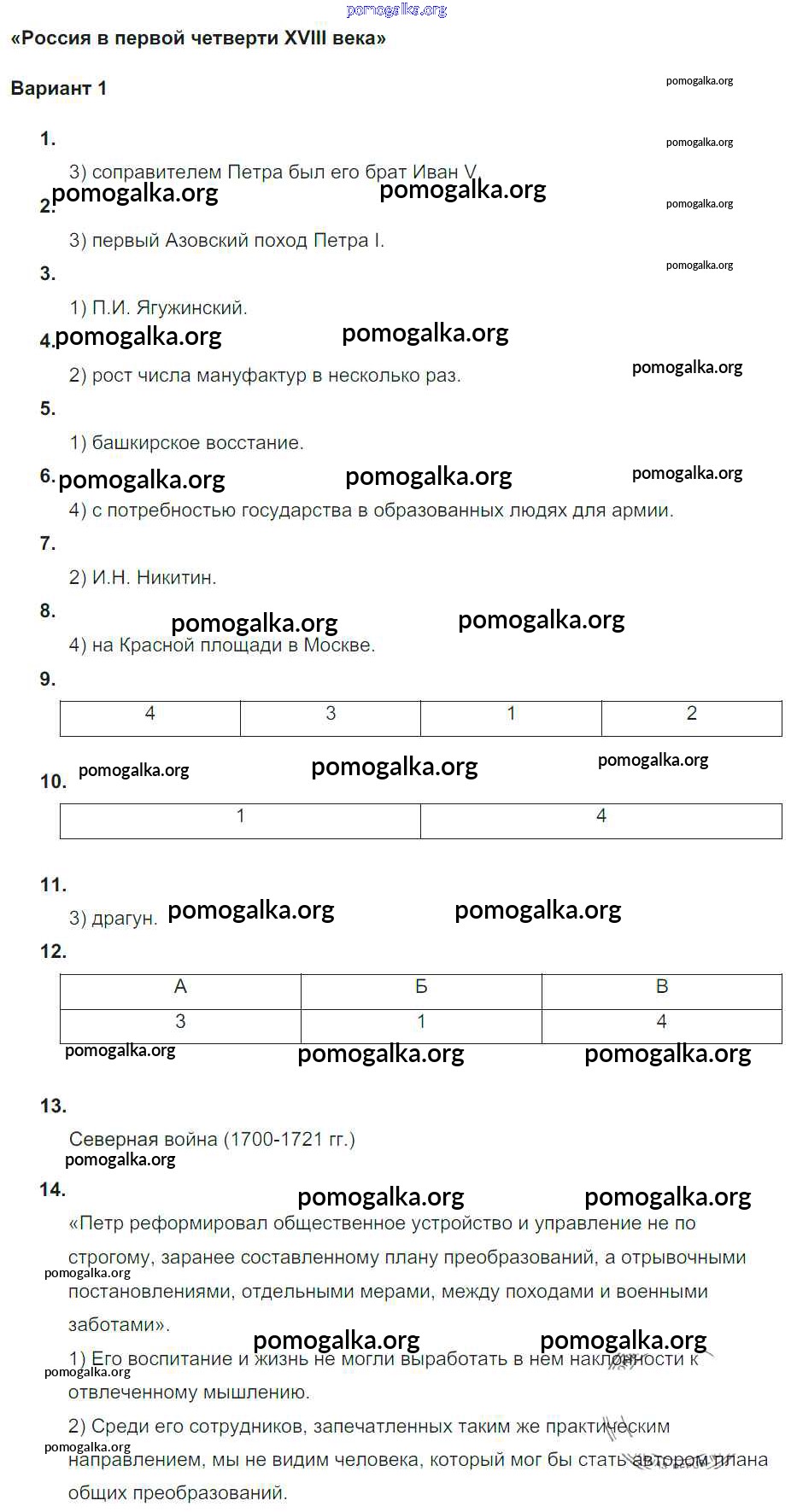 Готовые ответы - История 7 класс рабочая тетрадь. Тематический контроль Акиньшина О.Н. - ср-1 Россия в первой четверти XVIII века Вариант 1